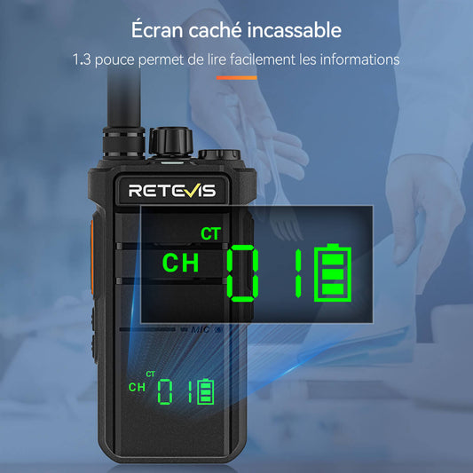 Radio portable UHF 3W RB626H avec écran caché Retevis